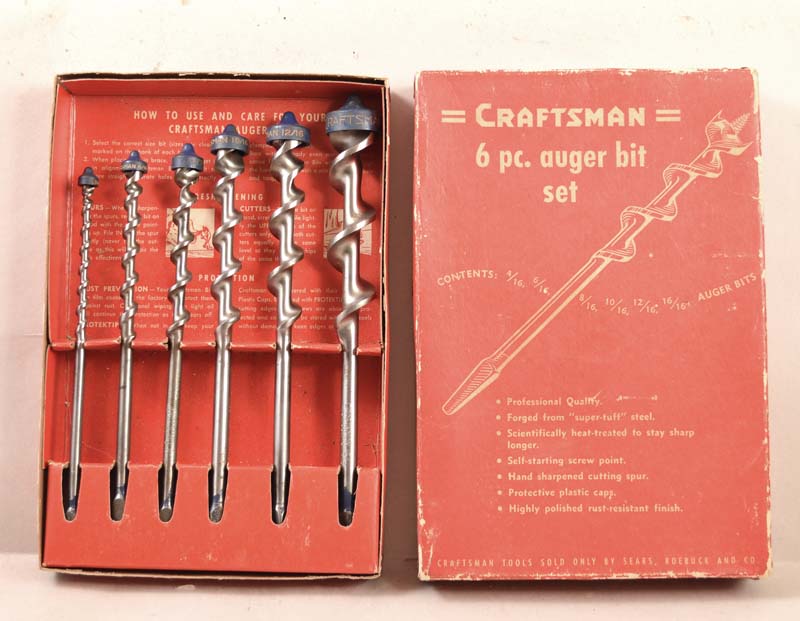 - CRAFTSMAN 6 PC. AUGER BIT SET, In the original box. Little-used, if at all, condition. 4/16, 6/16, 8/16, 10/16, 12/16, and 16/16.