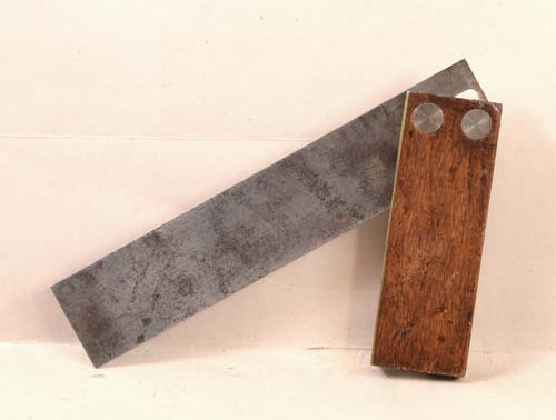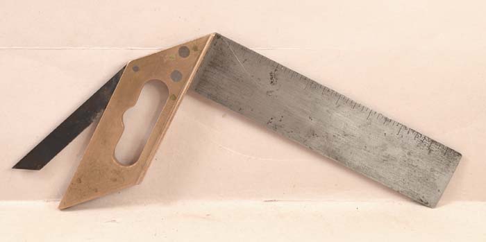 - BEVEL SQUARE, unmarked,but like the early Halstead and Ackerman bevel but with a brass handle that holds the bevel arm which pulls out to adjust a bevel. 8-inch blade is graduated in 8ths, G+ ........ $45.00