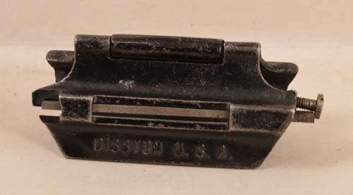 - DISSTON SAW JOINTER, To level the teeth on rip and crosscut handsaws. Hinged on the top to sit above the teeth and be guided by the saw blade. Missing some of the black enamel, and has some light rust. Original file, G+ ........... $40.00