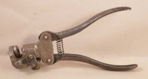 - E.C. ATKINS, RAKER SWAGE, I haven't seen one of these before. A pocket-size (about four inches long) tool for swaging the raker teeth. It is not marked with a number, but has the Atkins mark and Pat. Applied For. Probably made to compete with the Anderson tool. It apparently didn't catch on. Crisp, has some surface rust, G+ ........... Sold $35.00